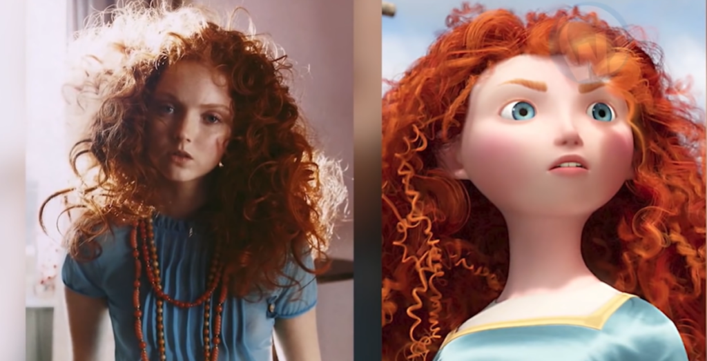 When Pixar created Brave, they wanted Merida to represent a new kind of princess—one with “messy” hair that symbolized her wild spirit. When the film was released, the fashion world immediately pointed toward British model and actress Lily Cole.
