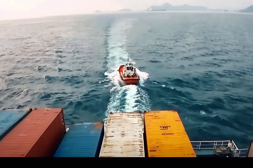 Even as his mind raced with complex strategies, he maintained a stoic, calm exterior, constantly altering the ship’s speed and heading to create unpredictable patterns that left the pursuers struggling to maintain their course. He shrewdly weaponized the container ship’s sheer bulk, executing sharp turns that generated massive, churning wakes to destabilize the smaller crafts, effectively using the crashing waves as a formidable barrier against the attackers.