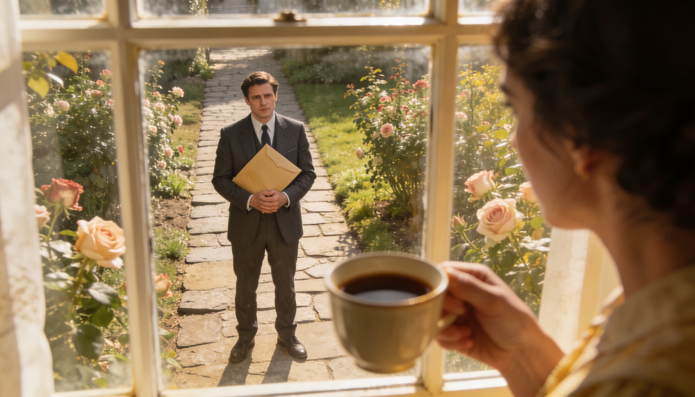 Was he frantic? Was he relieved? Had he already called her? The questions spun in a loop, a torture of my own making. I watched the street, desperate for a distraction, and that was when I saw him. A figure was walking up the garden path, not Robert, but a man I didn’t recognize. He was dressed formally, moving with a grim determination that sent a fresh wave of anxiety rippling through me. He carried a thick envelope in his hand, clutching it tightly.