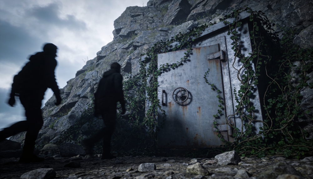 We stopped at the base of a rocky hill. Covered in vines was a steel door that looked like it belonged in a fallout shelter. “This is it,” Gabriel said.